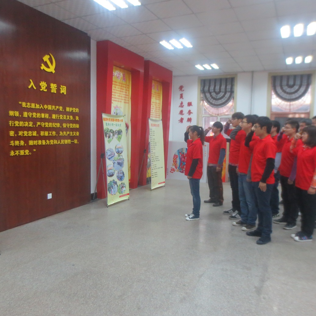 本科生党支部组织开展了 “风雨同舟二十载 志愿服务谱新篇”服务型党支部创建活动。2014年12月2日上午,党支部全体学生党员在院团委书记兼本科生党支部书记朱宇、本科生党支部副书记张昊宇的带领下来到清和街道铁路社区党建活动室开展了纪念“一二•九”学生爱国运动79周年暨入党宣誓仪式。