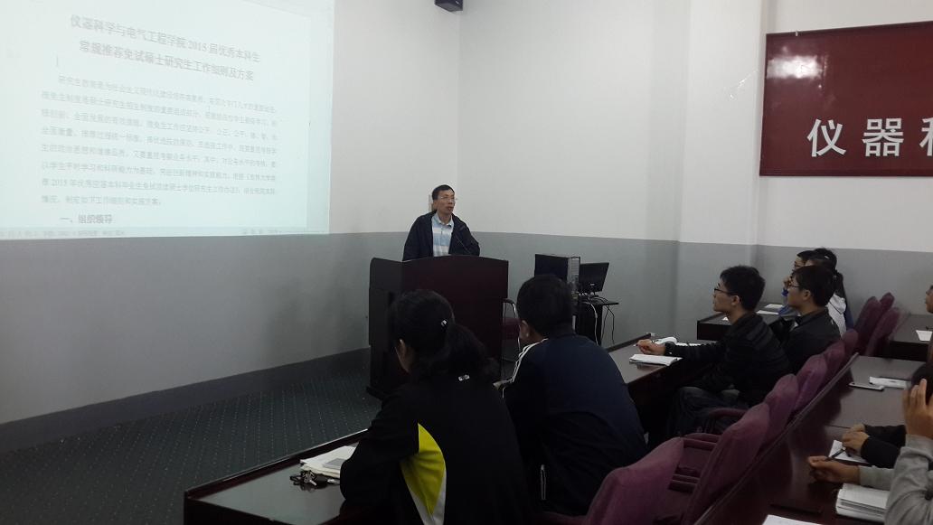 2015届优秀本科生常规推荐免试硕士研究生工作细则及方案》,就其中大家普遍关注的政策进行了详细解读,并就推免工作具体安排进行了部署。陈祖斌院长希望同学们认真研读工作细则及方案,认真按照工作安排进行申报和准备。随后,陈祖斌院长就《香港六合彩开奖号码