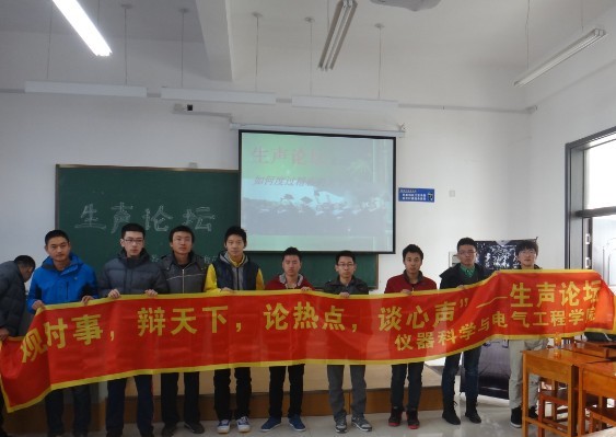 团委组织策划了“生声论坛”系列活动。2013年12月16日,第四期“生声论坛”活动以“如何度过大学四年”为主题在中心校区李四光楼214室举行。