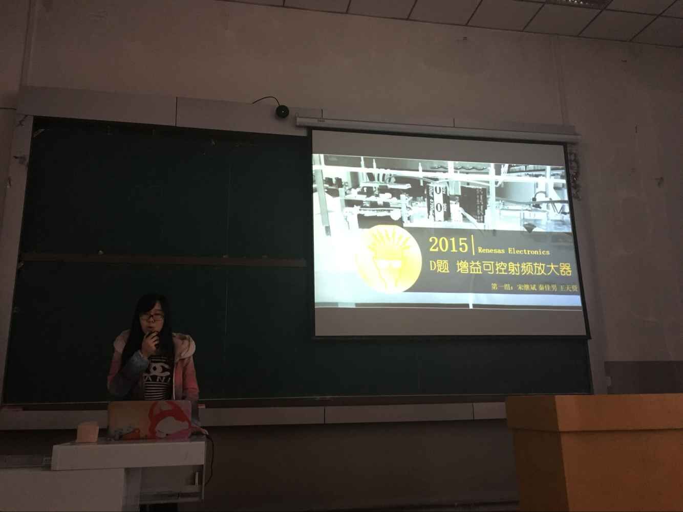 同学在2015年全国大学生电子设计竞赛中所取得的成果进行了简单的总结。随后沙龙活动直入主题,首先第三批“216+开放实验室”第一组成员:宋继斌,秦佳男,王天资进行报告,报告题目《2015年国赛D题—增益可控射频放大器》。王天资学姐就D题分析了比赛的主要思路和所用器件并与其他组的作品进行了相互比较,提出了作品的不足之处—所使用的器件技术参数不高,并希望大家今后多了解一些先进的器件。同时,她向在场的参与者分享了一些小技巧。紧接着第三批“216+开放实验室”第二组成员:白杨,施震,杨巍做报告,报告题目:《2015年国赛B题—风力摆控制系统》。白杨学长就B题总结了比赛期间他们的两种方案—“位置法”,“能量法”。并提出了这两种方法各自的优缺点,提醒大家在做控制题的时候要选好方案。报告结束后,进入到热烈的提问时间。在场的所有成员根据自己的学习方向向两组报告人提问,学长学姐们一一解答。最后,总结沙龙在热烈的讨论与交流中结束。