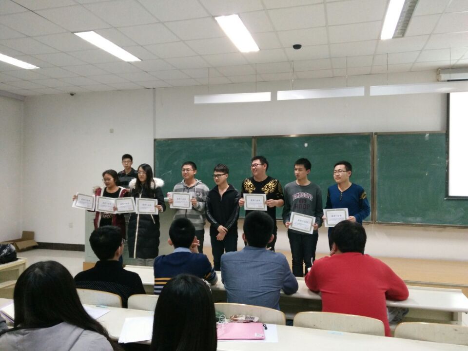 在李四光楼302教室举行了电子设计竞赛颁奖仪式,颁奖仪式由电子科技协会副主席周葛主持,分团委副书记于一兵,学生会主席岳良广以及电子科技协会副主席张思雨出席了本次仪式,2015级全体新生参加了本次仪式。