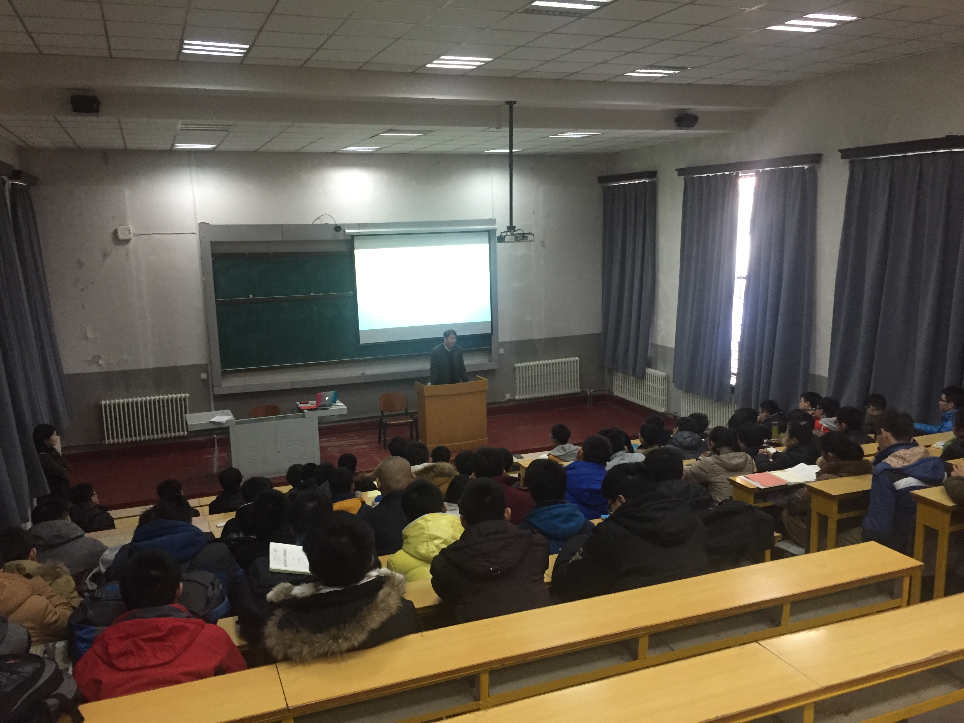 “216+开放实验室”以及电子科技协会组建的科技创新团队计划于2016年1月15日-25日开展寒假专业社会实践活动,为广大有志在寒假期间将专业实践活动与专业学习相结合,与创新创业相结合提供一个良好的平台。为了进一步提升同学们的学习热情,“216+开放实验室”科技创新团队于2016年1月15日上午9:00在地质宫224室举行了寒假专业社会实践活动动员大会。院党委副书记兼副院长邱增凯老师、院长助理兼仪器系主任凌振宝教授出席动员大会并发表讲话。参加本次寒假社会实践的同学们准时与会。