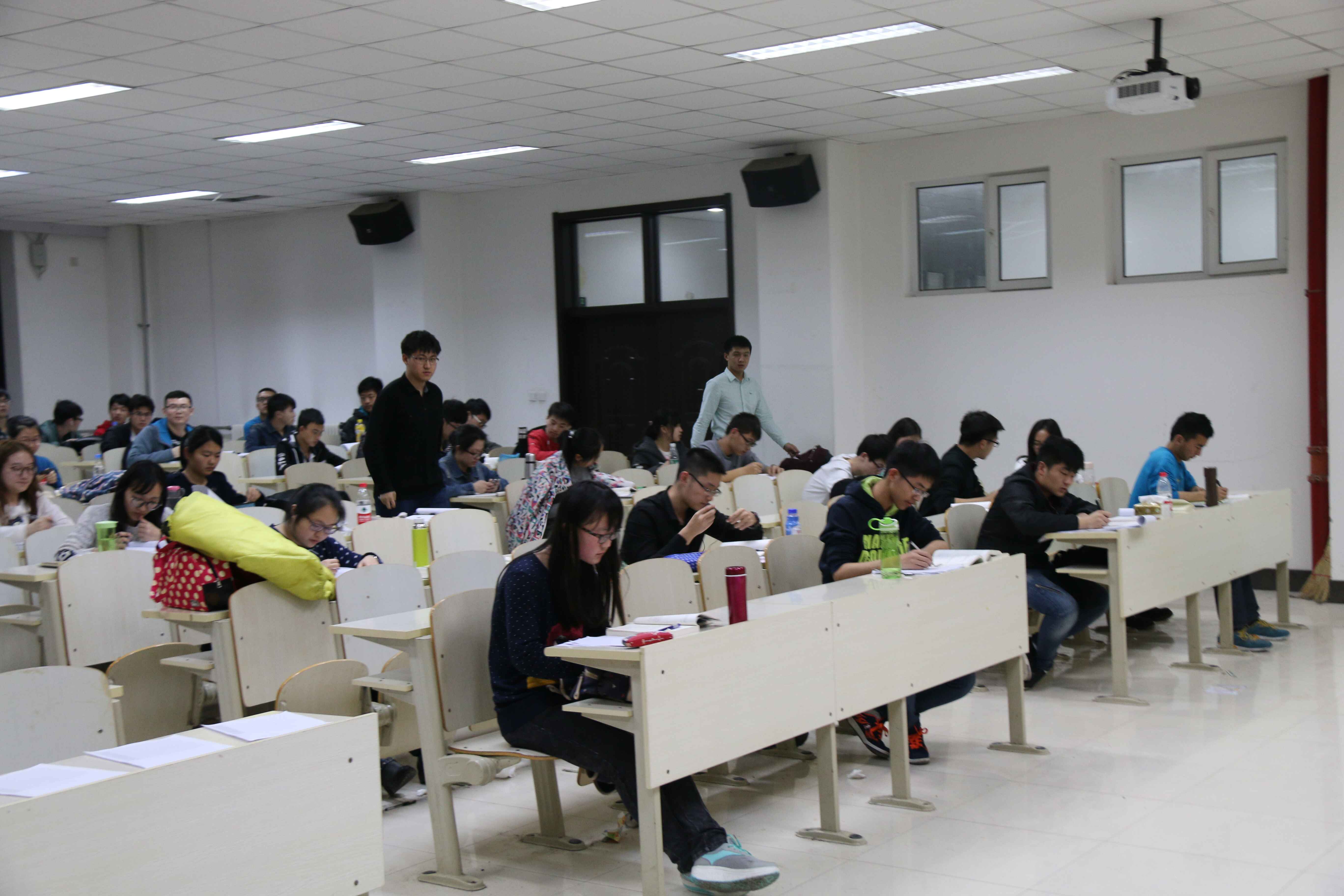 学生会学习部5位副部于2016年4月12日18:30,在李四光教学楼306教室对大一学生晚自习出勤情况进行了全面检查。