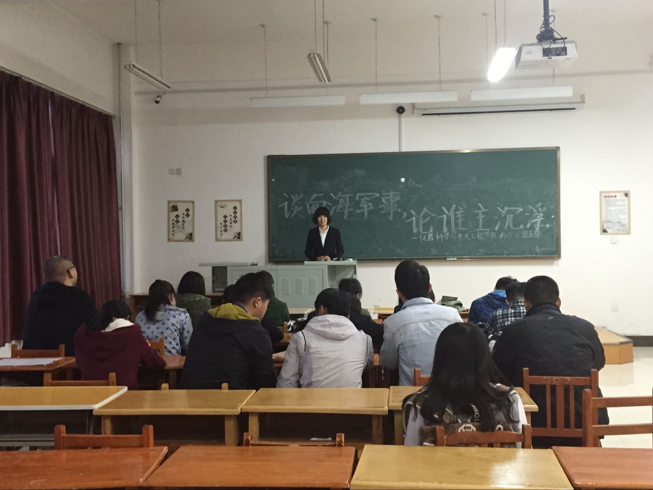 学生会秘书部于2016年4月19日18:00在李四光楼313教室开展了生声论坛第十八期活动,活动以“谈南海军事,论谁与沉浮”为主题,651502团支部和秘书部的成员们参加了本次活动。