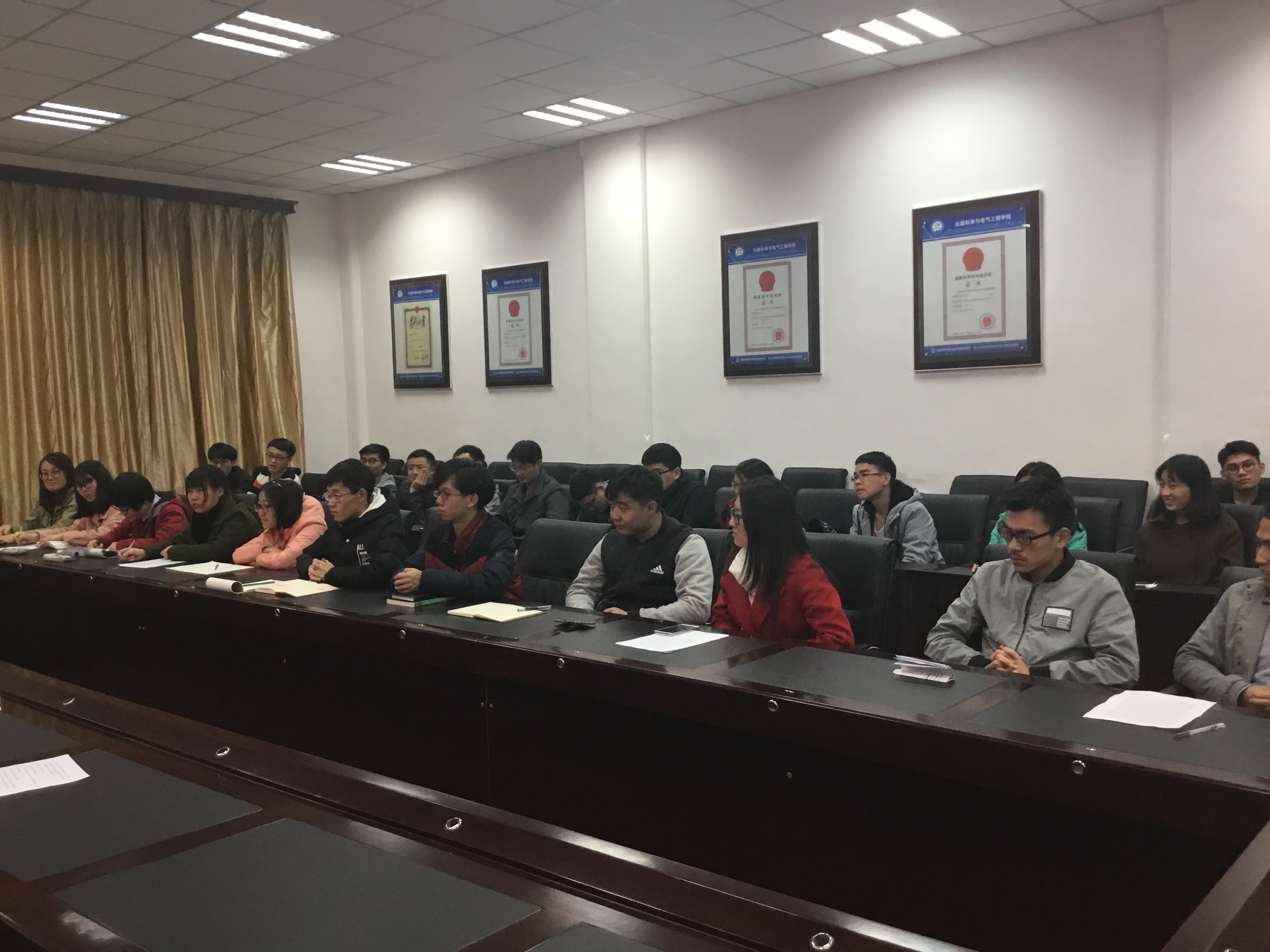 会议伊始,本科生党支部书记张昊宇老师对十九大报告精神进行传达。随后,在座同学党员就他们对十九大报告的感悟进行有序发言,表达了自己的感悟与收获,以及对未来的期望。发言期间,在座党员均认真倾听,频频点头,并不时进行记录。伴随着一次又一次精彩的发言,同学们各式各样的思想不断碰撞,各种角度的感悟也引起了大家的思考,加深了对十九大报告精神的理解,营造了和谐的交流氛围。