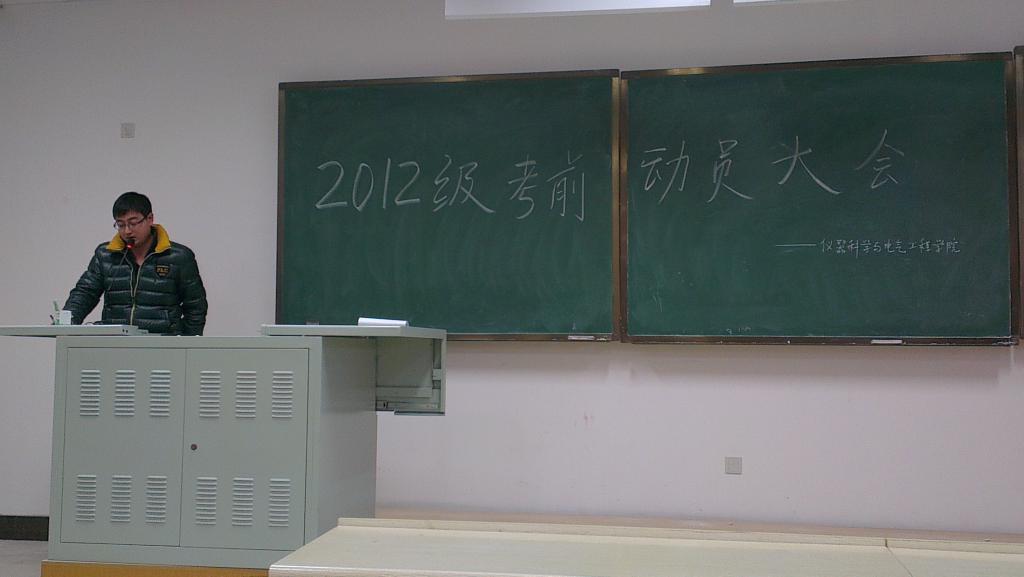 会议的尾声由仪电二班付博同学宣读考试须知、注意事项并告诫同学们应诚实做人,诚信考试,树立良好的考场形象。
