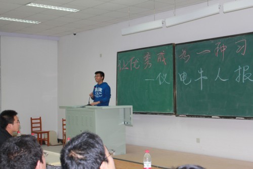 电气工程及其自动化专业2008级黄廷哲同学登场,为大家分享了自己的成长和成功的经历。他从自己刚踏入吉大的第一天开始讲起,仔细地介绍了他四年成长的风雨历程:怎样从青涩走向成熟,怎样通过自己努力的奋斗由平凡走到出色。他还明确的指出:把学习放在首位,侧重科研,兼顾社团活动,是大学成功的一个重要发展方向。“君子之交淡于水”、“与书为友”、“重在提高自身广度、深度和修养”的人生观是他四年奋斗史留下的思想结晶,也为正处于迷茫中的同学们指明了前进的方向。