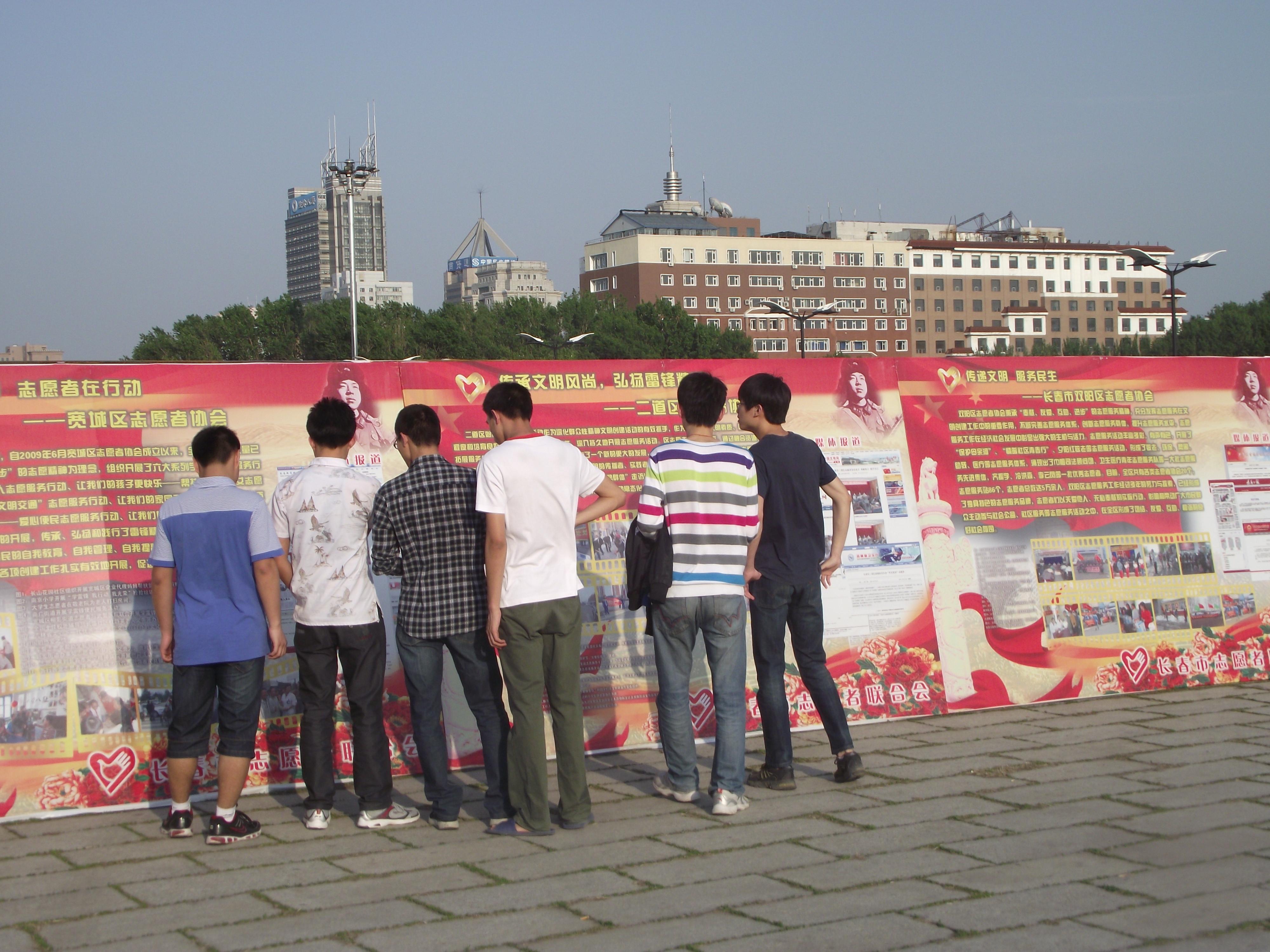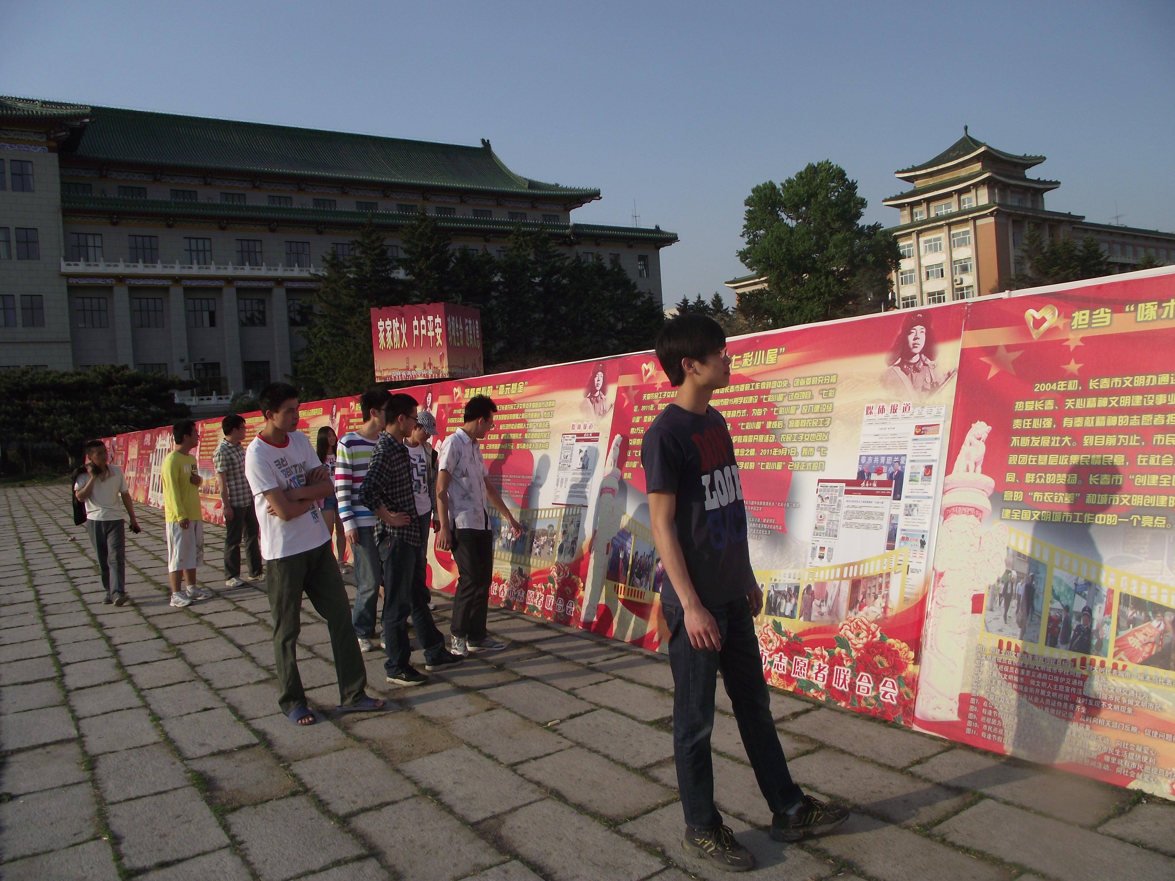团委、学生会于2012年5月20日中午12:00组织主要学生干部前往文化广场参观了由省文明办、省志愿者协会联合举办的《吉林志愿服务大型图片展》。
