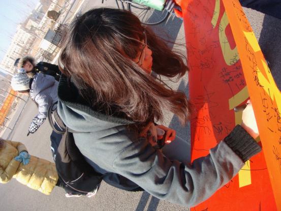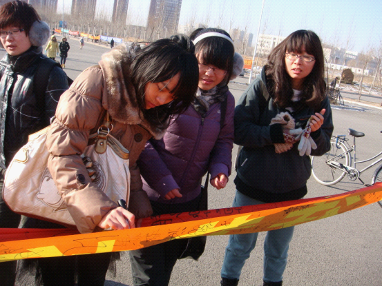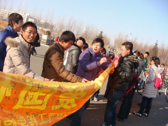 团委、学生会于2011年12月9日中午在中心校区举办了纪念“一二•九”运动主题签名活动。