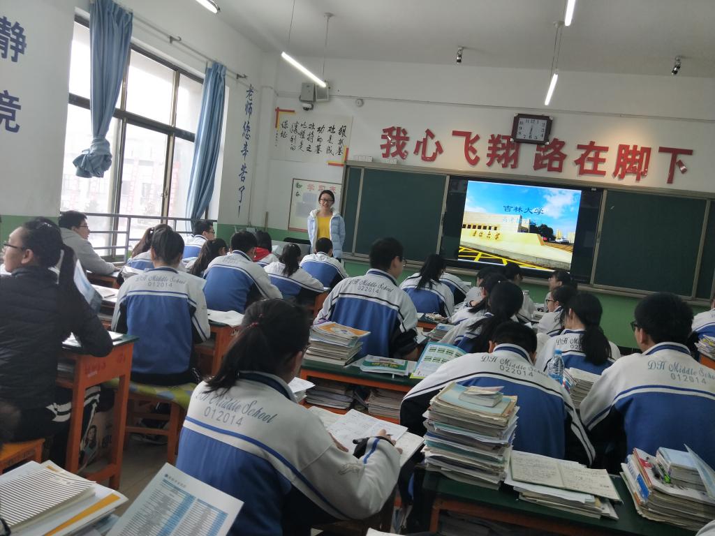 首先,宣讲队成员向同学们下发了宣传资料和精美的书签,从同学们浏览资料的眼神中,看到了他们对大学生活的向往,及对高考必胜的决心。随后,播放了《大美吉大》纪录片,同学们被吉林大学的优势地位以及校园悦人的美景所吸引。之后,宣讲队成员将准备好的校区简介以及学科优势等内容以诙谐幽默的方式向同学们表达,在快乐的氛围中让同学们感受到吉林大学对他们的欢迎和期待。最后,在提问环节,同学们热情、积极地提出自己的疑惑,宣讲队成员耐心、准确地为他们解答。这进一步拉进了与同学们之间的距离。在这距离高考100天之际,此次宣讲活动,为同学们的紧张的高考复习生活增添了几分色彩,增大了同学们对吉林大学的向往。