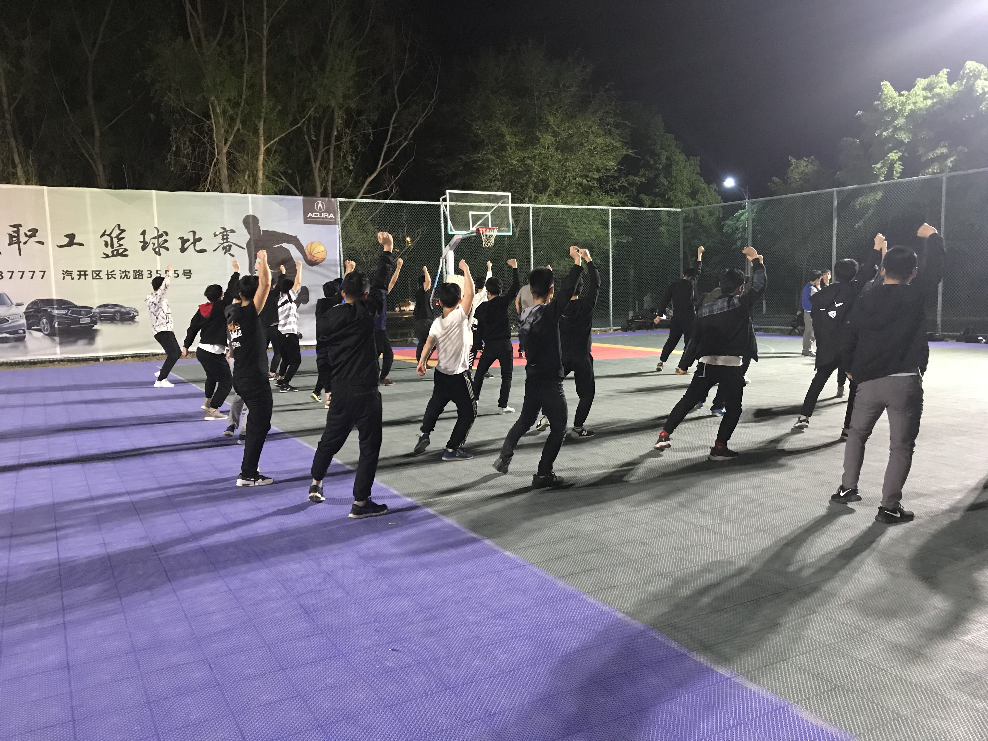 于2018年5月13日晚9:00在中心校区篮球场展开了团体项目的训练工作。