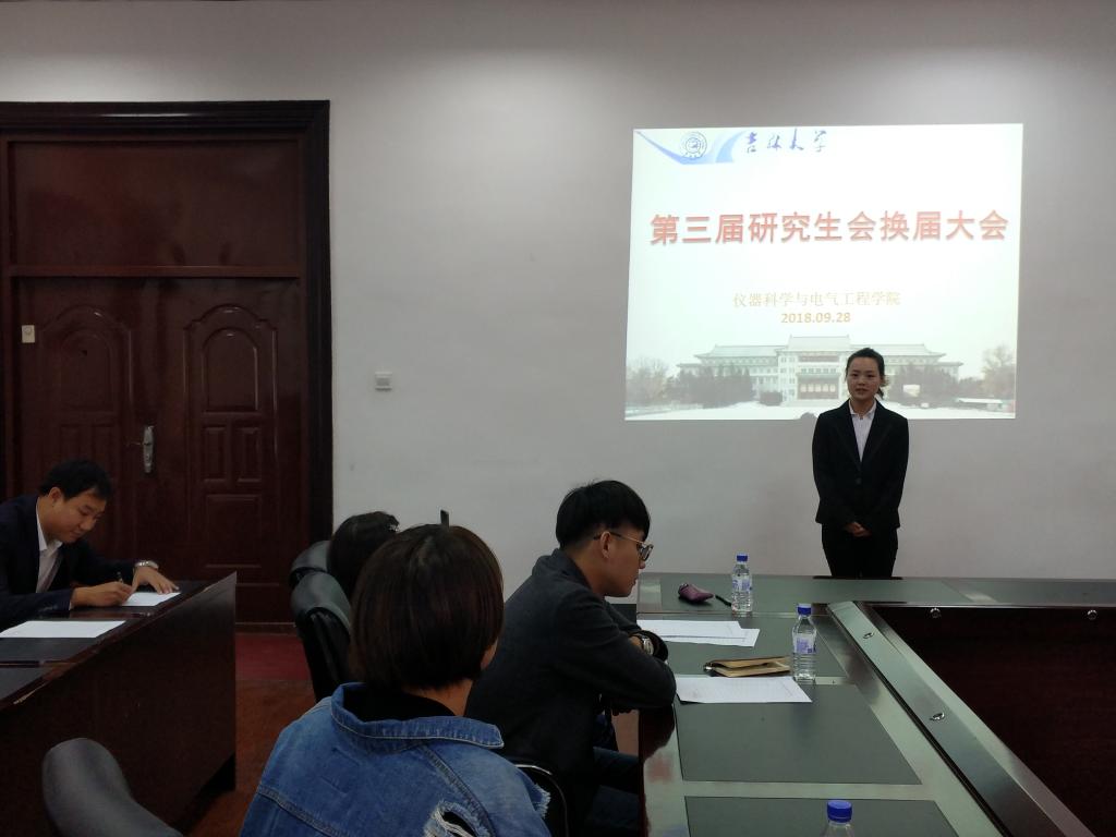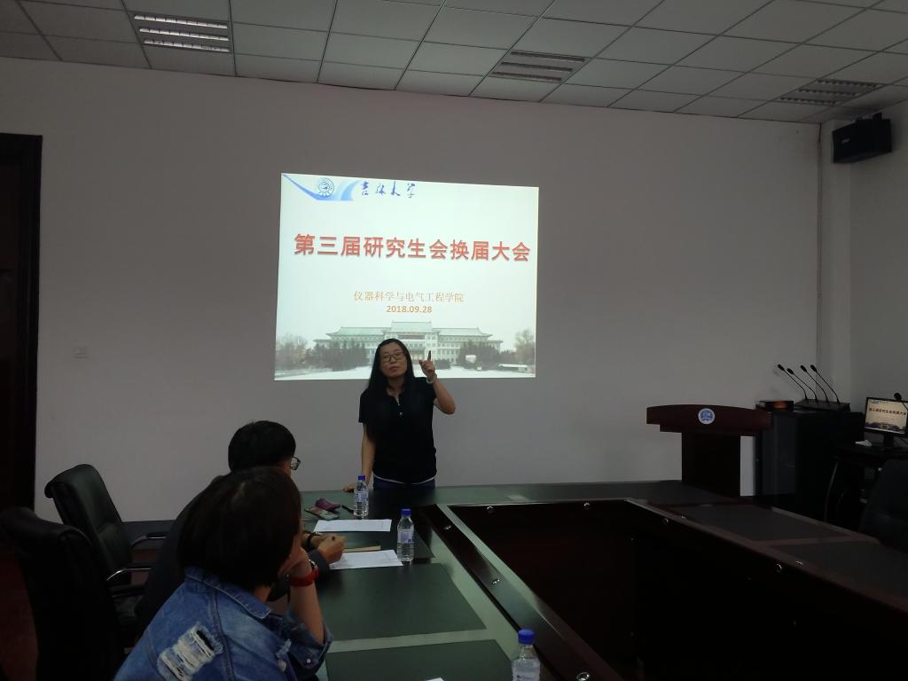 研究生办公室主任杨冬老师主持,第二届研究生会干部代表及全体干事出席会议。