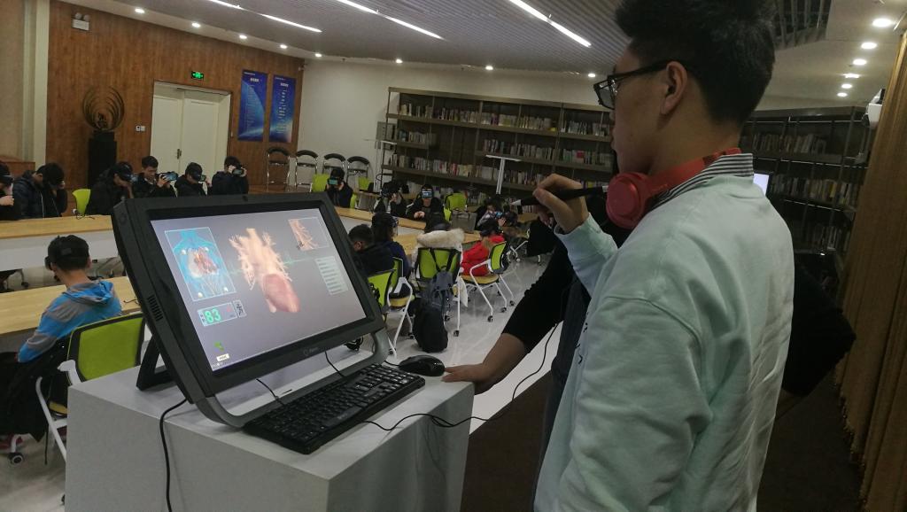 参观活动开始,领队老师将同学们分为4组,前去不同的参观地点。首先是体验VR技术,感受科技对日常教学的辅助功能。现场老师向同学们讲解了VR技术的发展历史以及发展前景,接着让同学们体验了VR技术,同时邀请感兴趣的同学上前体验VR技术在医疗教学上的应用。同学们对此表现十分踊跃。其次是参观吉林大学五大香港六合彩开奖号码
