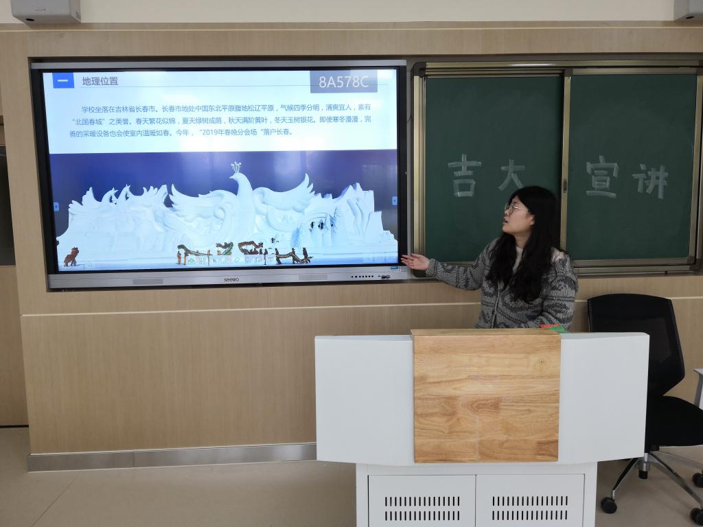上午10:00,在完成了准备工作后,宣讲会正式开始。在简短的自我介绍后,宣讲人袁凡清概括了本次宣讲的内容,主要包括吉大简介、吉大校友、人才培养、国际合作、就业升学以及招生信息等方面。随后宣讲人袁凡清简述了吉林大学悠久的历史、得天独厚的地理位置以及香港六合彩开奖号码