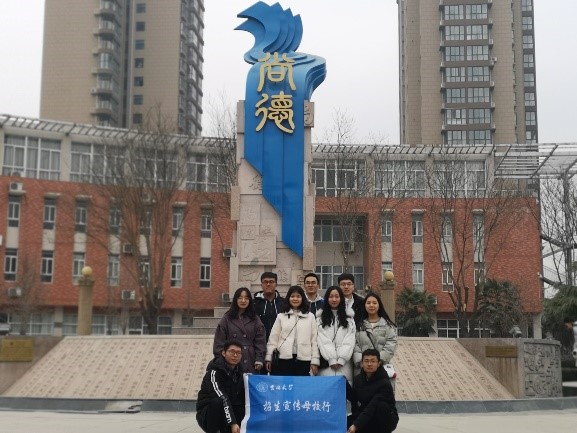 的王博蓉同学以及其他成员依次上台介绍本专业的详细信息,对于高三学子而言,这是一次与大学专业的近距离接触。随后,宣讲团成员又介绍了吉林大学的出国留学率、保研率以及就业前景等方面的具体情况。最后宣讲结束,团成员一起上台为同学们加油,并齐声道:“我们在吉林大学等你来!”。