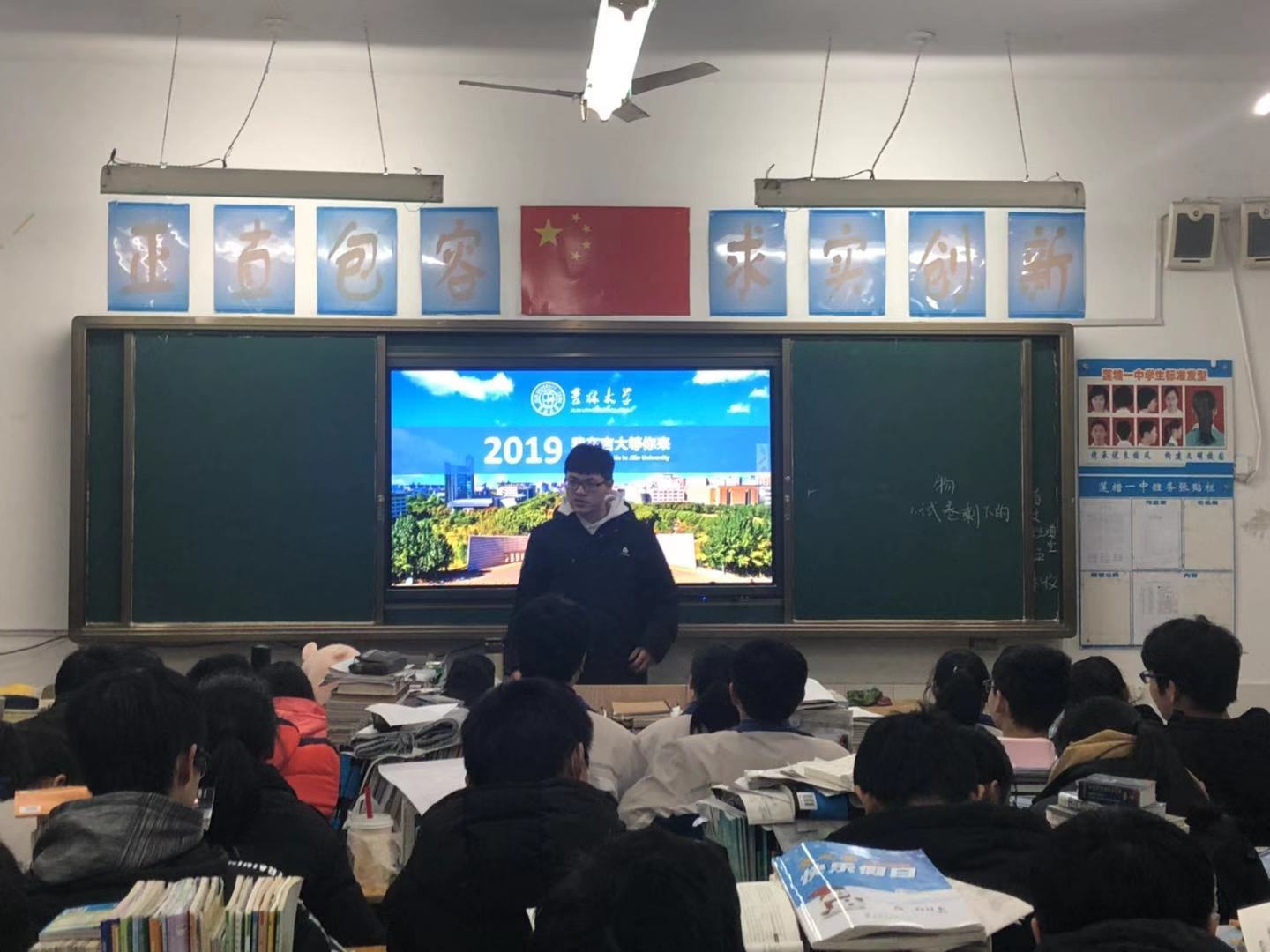 2019年1月21日下午7:00,在征得莲塘第一中学同意的情况下“情系母校莲一行”团队依次进入班级进行宣讲活动。每进入一个班级,学弟学妹们都报以热烈的掌声。团队成员首先向学弟学妹们介绍了自己的身份并表明来意,随后播放了吉林大学的宣传视频《梦舞吉大》,通过视频学弟学妹们感受到了吉大学生日常生活的的多姿多彩。然后,卞思宇从香港六合彩开奖号码