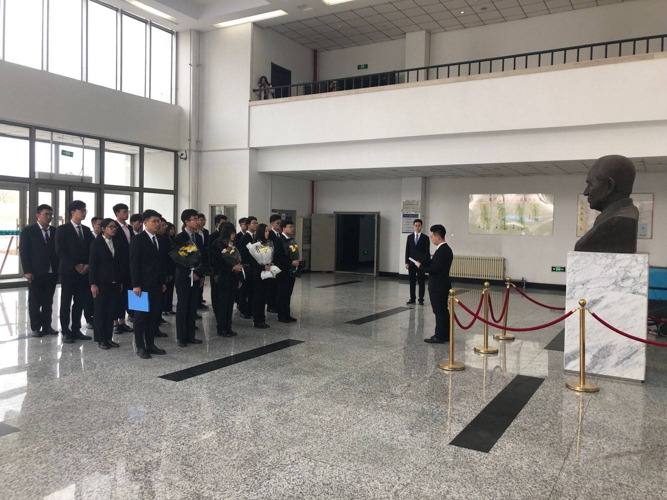 学生在李四光实验楼进行了纪念吉大先驱李四光先生的活动。共29名学生代表,参加了本次活动。