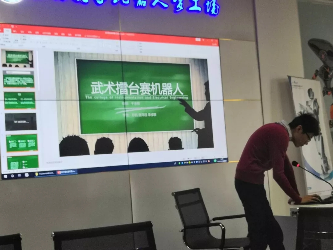 首先,王喆同学讲解了博创机器人的比赛规则和硬件调试方法。随后,惠乾鑫同学对博创人形机器人进行了简要介绍,并与学弟学妹们分享了参加机器人比赛的心得与体会。最后,滕泽远同学讲述了他对武术擂台赛机器人比赛项目的理解、选择做该项竞赛的原因以及比赛的收获。讲解结束后,在场的学长学姐分享了学习和生活上的经验,并对19级同学的大学生活给出了一些建议。同学们纷纷表示,在此次活动中了解了很多有关机器人的知识,受益匪浅。