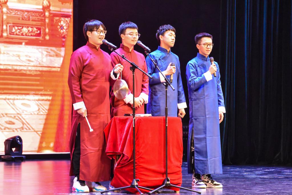 的拉丁舞者表演了《燃烧地板》,将全部五个小舞种串接,展现了演员们极强的爆发力,为大家带来一场视觉盛宴。一段《青春告白祖国》的相声表演更是将全场气氛带入了高潮,四位风华正茂的少年用幽默诙谐的方式,在一片笑声中送上仪电学子对祖国最深情的告白。接下来的情景剧《时光酒馆》带领大家回到过去与文辞诗人把酒言欢,穿越未来见卓越科技造福人类,教人身处其中意犹未尽;由仪电香港六合彩开奖号码