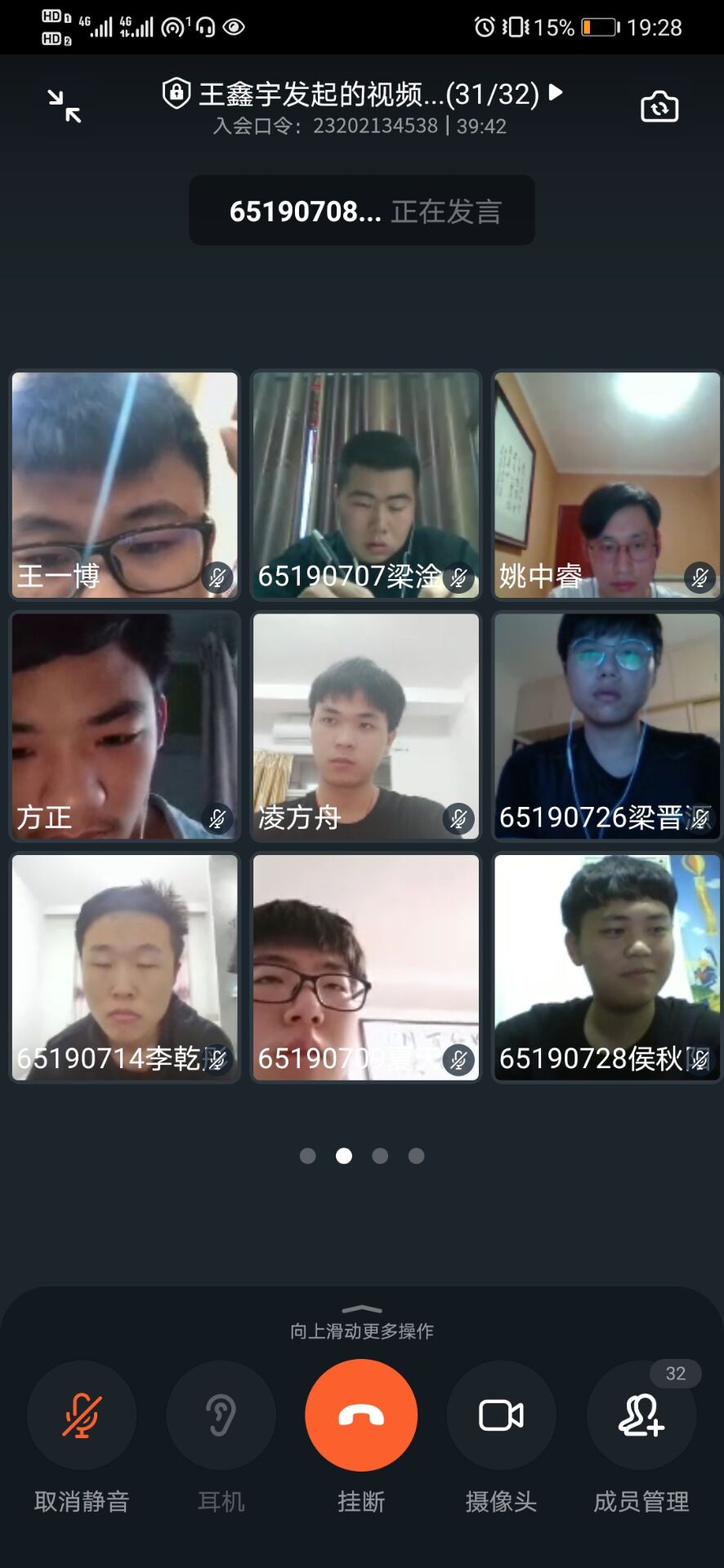 651907班在钉钉会议召开线上班会,651907班班导师周逢道老师和2019级辅导员马姗姗老师出席本次班会。