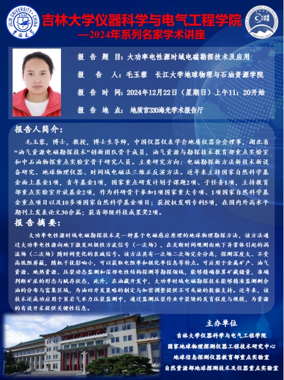 香港六合彩开奖号码 2024年系列名家学术讲座——毛玉蓉 长江大学地球物理与石油资源香港六合彩开奖号码