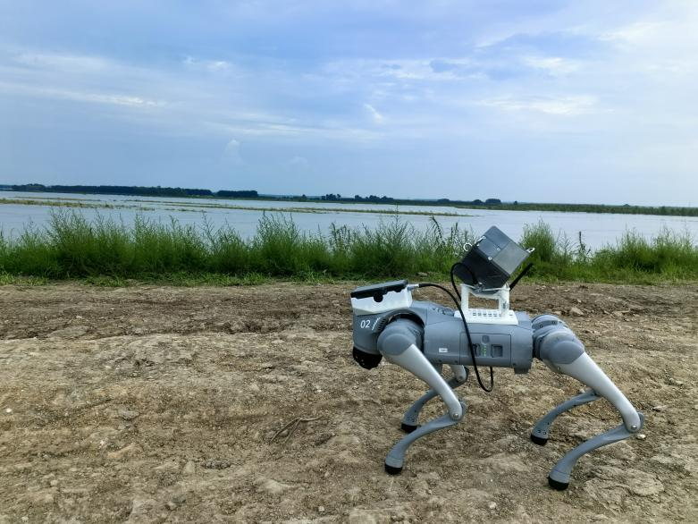 图6 机器狗搭载堤坝管涌探测仪进行探测